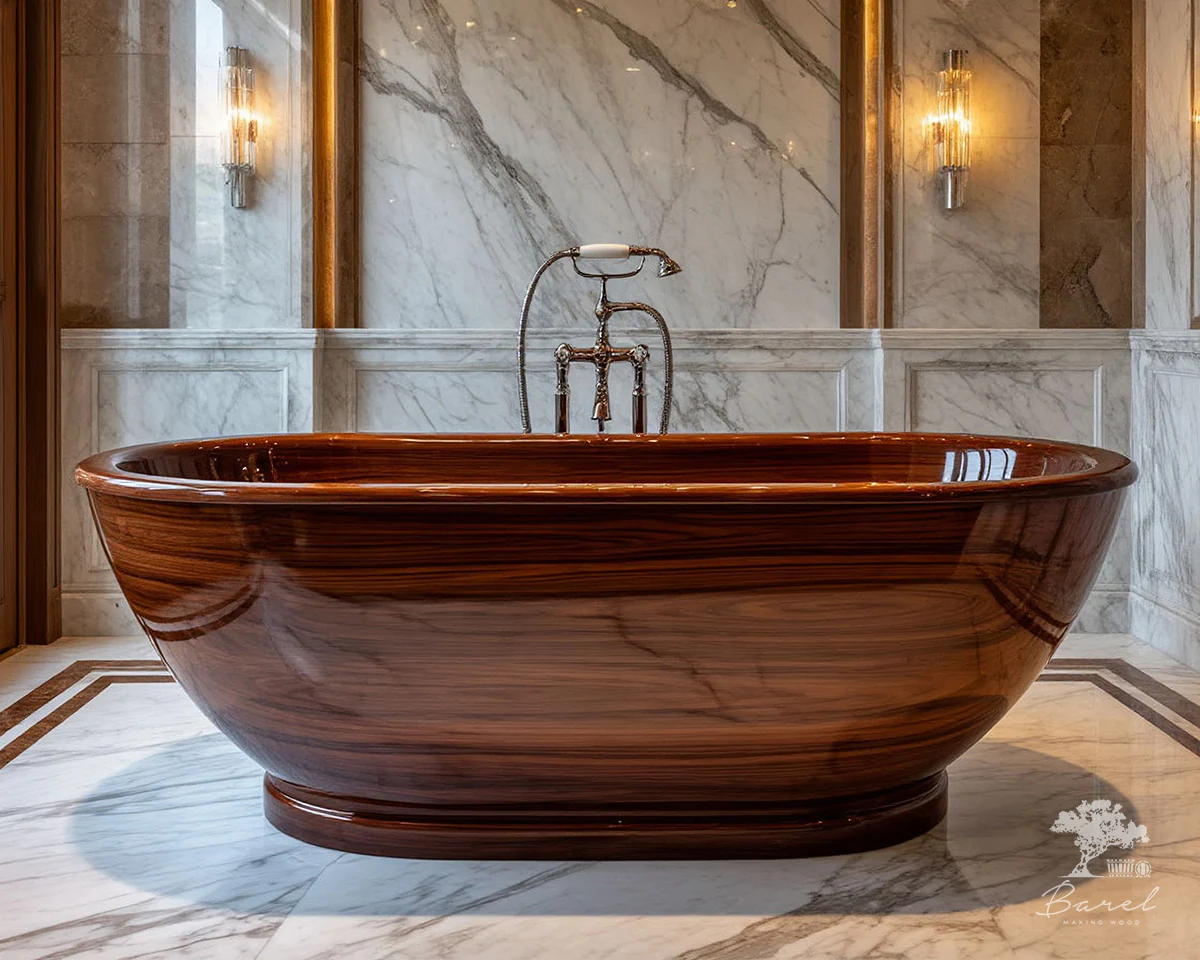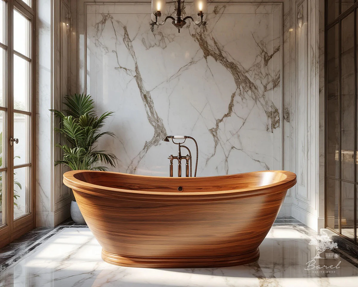 Деревянные ванны Barelwood — экологичность, прочность, роскошь и комфорт. Неповторимая фактура лучшей древесины, из которой мы производим ванны, добавит интерьеру ванной комнаты уникальность, элегантность и