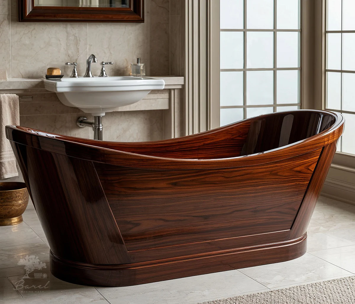 Деревянные ванны Barelwood — экологичность, прочность, роскошь и комфорт. Неповторимая фактура лучшей древесины, из которой мы производим ванны, добавит интерьеру ванной комнаты уникальность, элегантность и изысканность. Проектируя наши деревянные ванны, мы используем всю силу и разнообразие природы, закладываем в них идеологию экологичности и пользы для здоровья. Деревянные ванны Barelwood обладают исключительной надёжностью и долговечностью. Они прослужат много лет, не требуя особого ухода. Древесная составляющая наших ванн делает их более теплыми и уютными, чем металлические или акриловые ванны. Это послужит неоспоримым преимуществом, особенно в холодное время года. Высокое качество обработки древесины и скрупулёзность ручной сборки деревянных ванн Barelwood не оставят вас равнодушными и подарят непередаваемое чувство восторга и гармонии. Мы производим деревянные ванны как по собственным готовым проектам, так и по индивидуальным. Ощутите единение с природой и превосходство над обыденностью вместе с деревянными ваннами Barelwood. Вы достойны самого лучшего.
