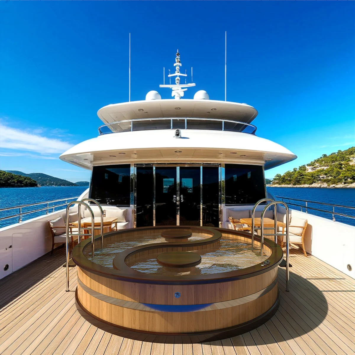 Глубина и ширина джакузи варьируется, в зависимости от ваших потребностей. Также, по вашему желанию, мы комплектуем джакузи широким ассортиментом современного дополнительного оборудования.