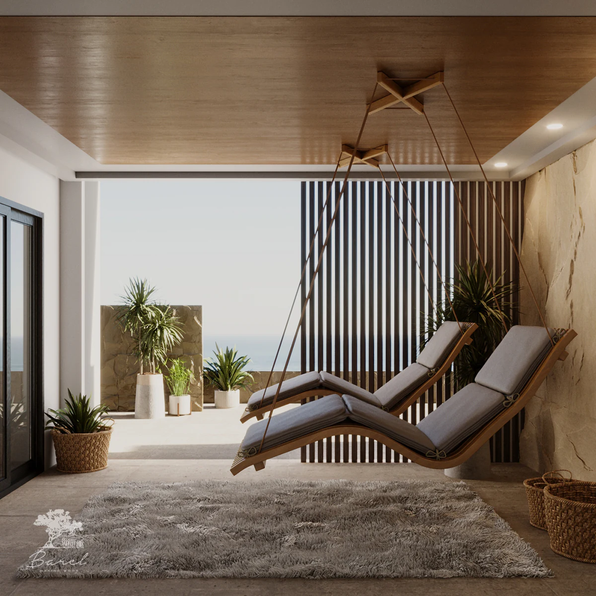Деревянные шезлонги Barelwood — ключевой элемент безупречного отдыха. Выполненные в гармонии с природой из экологичной древесины лучших сортов дерева, они сочетают в себе эстетику современного премиального дизайна, исключительный уровень надёжности, качества сборки, а также уникальные наработки в сфере эргономики и удобства. Проектируя наши шезлонги, мы руководствовались одной главной целью — добиться единства плавных линий человеческого тела и динамичных контуров изделия. В конструктивном плане деревянные шезлонги Barelwood выполнены в наших лучших традициях стремления к совершенству. Геометрия каркаса шезлонгов детально просчитывается на предмет нагрузок и усилий, учитывая достаточную дельту запаса прочности. Конструктивная особенность ножек каркаса исключает возможность скольжения на любой поверхности. Деревянные ламели шезлонгов подвергаются специальной термической обработке и собираются друг с другом в единую параметрическую систему. Мягкий матрац выполняется из экологичных материалов с расцветкой на выбор.